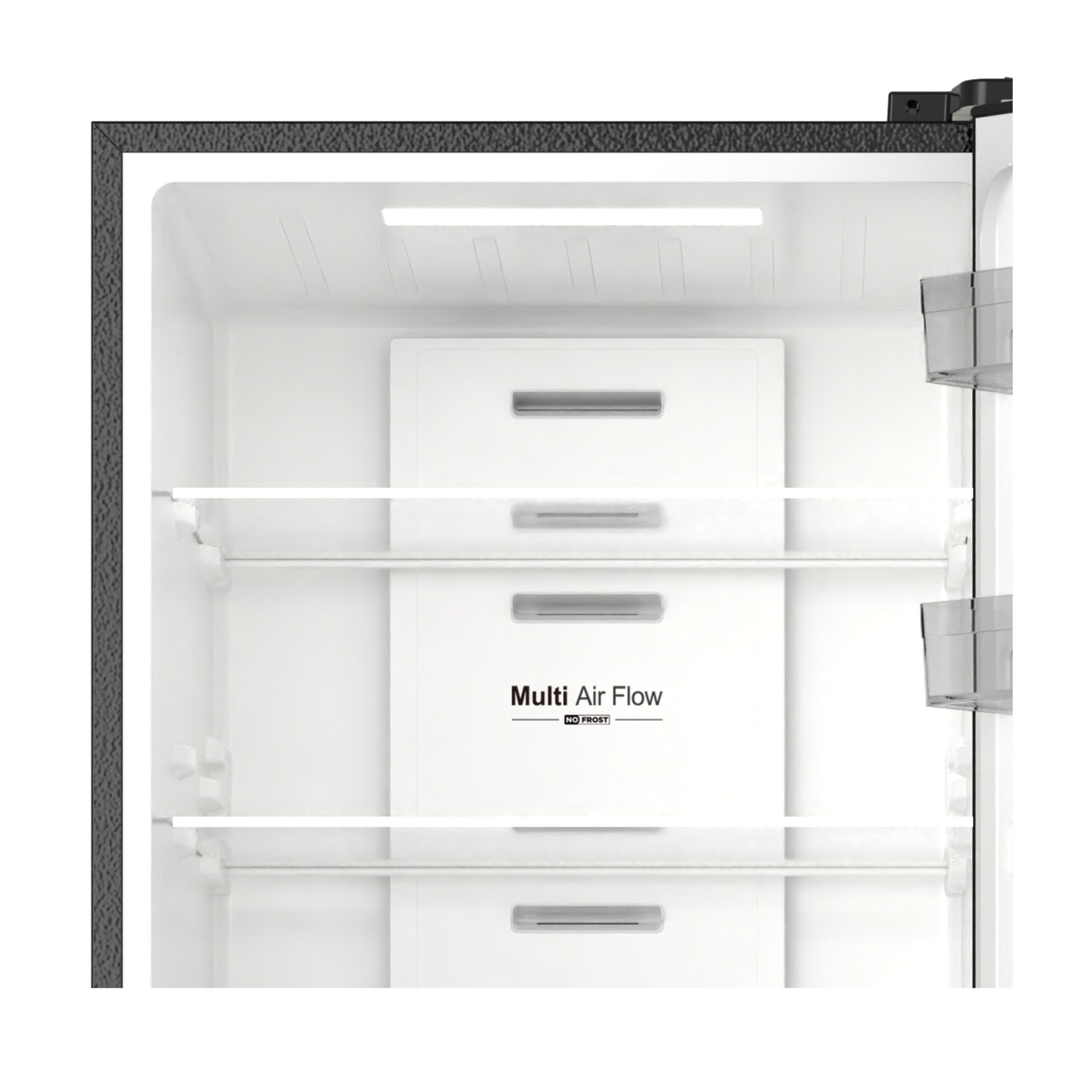 Dodatkowo system Multi Air Flow równomiernie rozprowadza chłodne powietrze po wnętrzu urządzenia. W rezultacie pomaga utrzymać stabilną temperaturę na różnych poziomach lodówki, a tym samym zwiększa wygodę codziennego przechowywania produktów. Całość uzupełnia oświetlenie LED, które dobrze doświetla wnętrze i jednocześnie ułatwia szybkie odnalezienie potrzebnych artykułów.