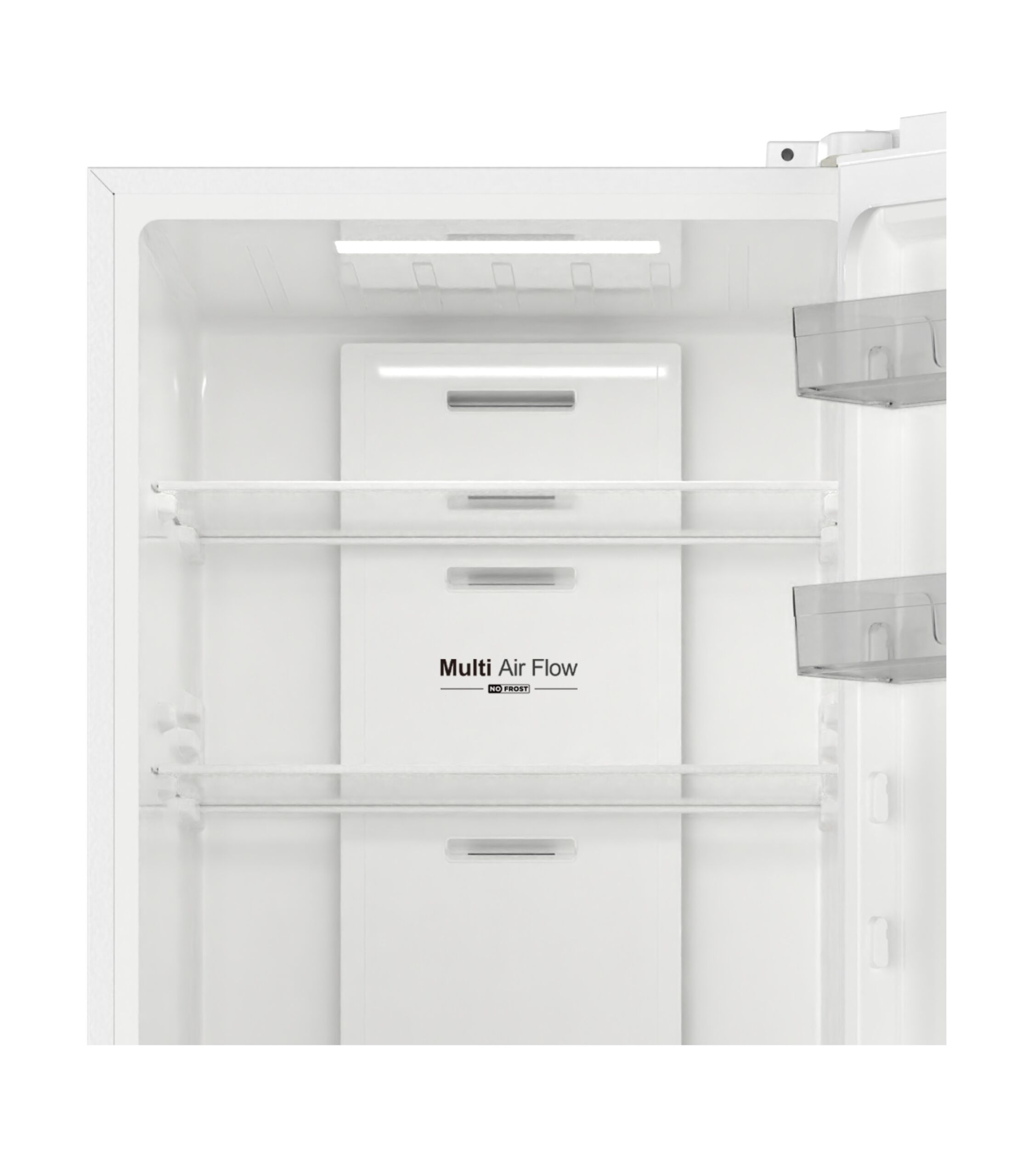 Dodatkowo system Multi Air Flow odpowiada za równomierne rozprowadzanie chłodnego powietrza po wnętrzu urządzenia. Dzięki temu temperatura wewnątrz lodówki jest bardziej stabilna. Całość uzupełnia oświetlenie LED, które dobrze doświetla wnętrze lodówki i ułatwia szybkie odnalezienie produktów.